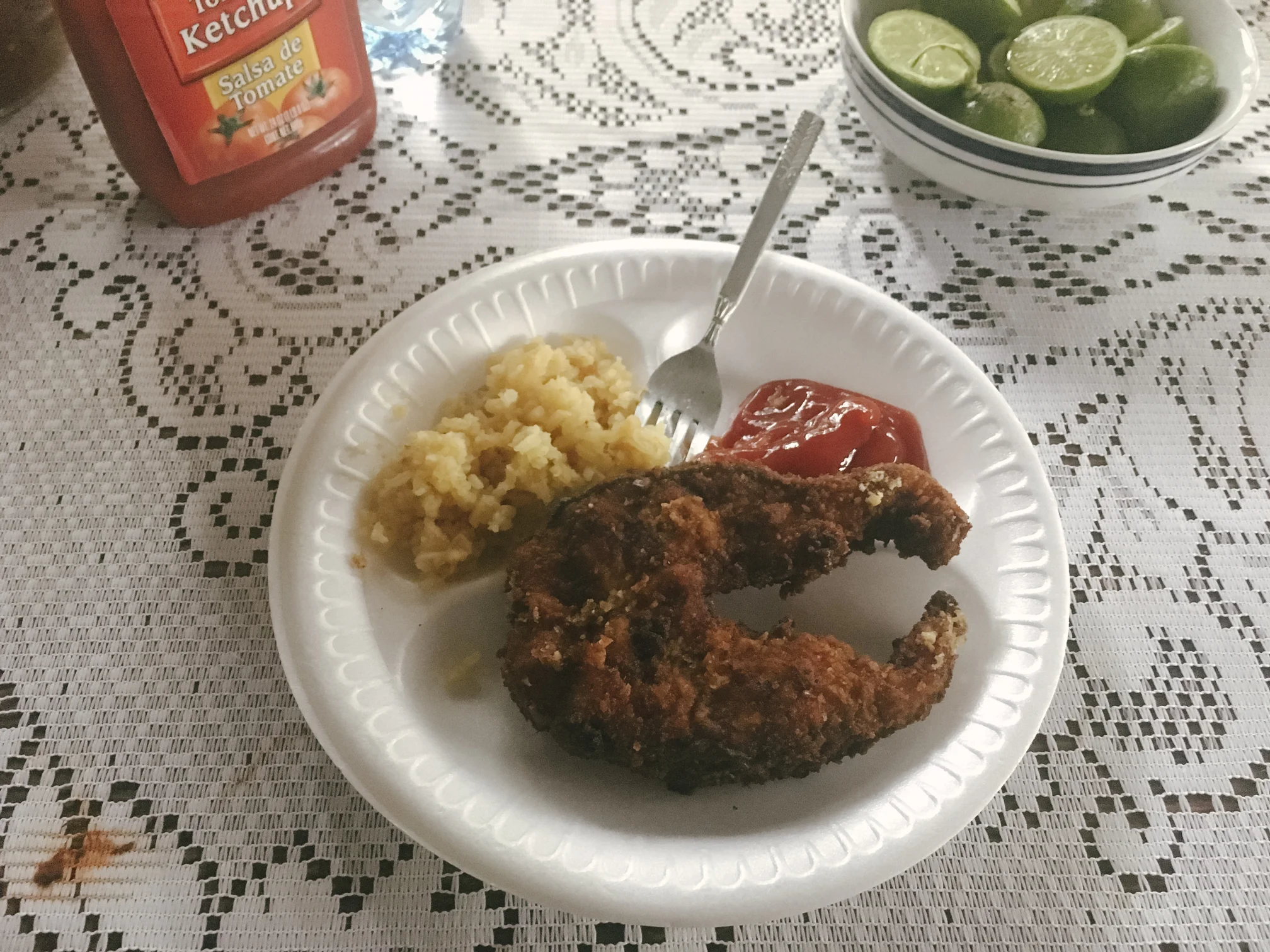 Sunday lunch: breaded fish and rice. March 12, 2017