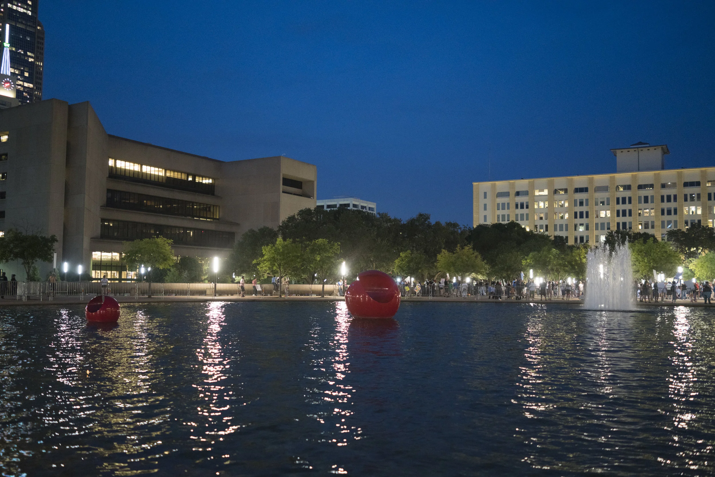 Police presence was heavy, especially as the protest shifted from Dallas City Hall towards Pioneer Plaza Cemetery. There were no reports of injuries.