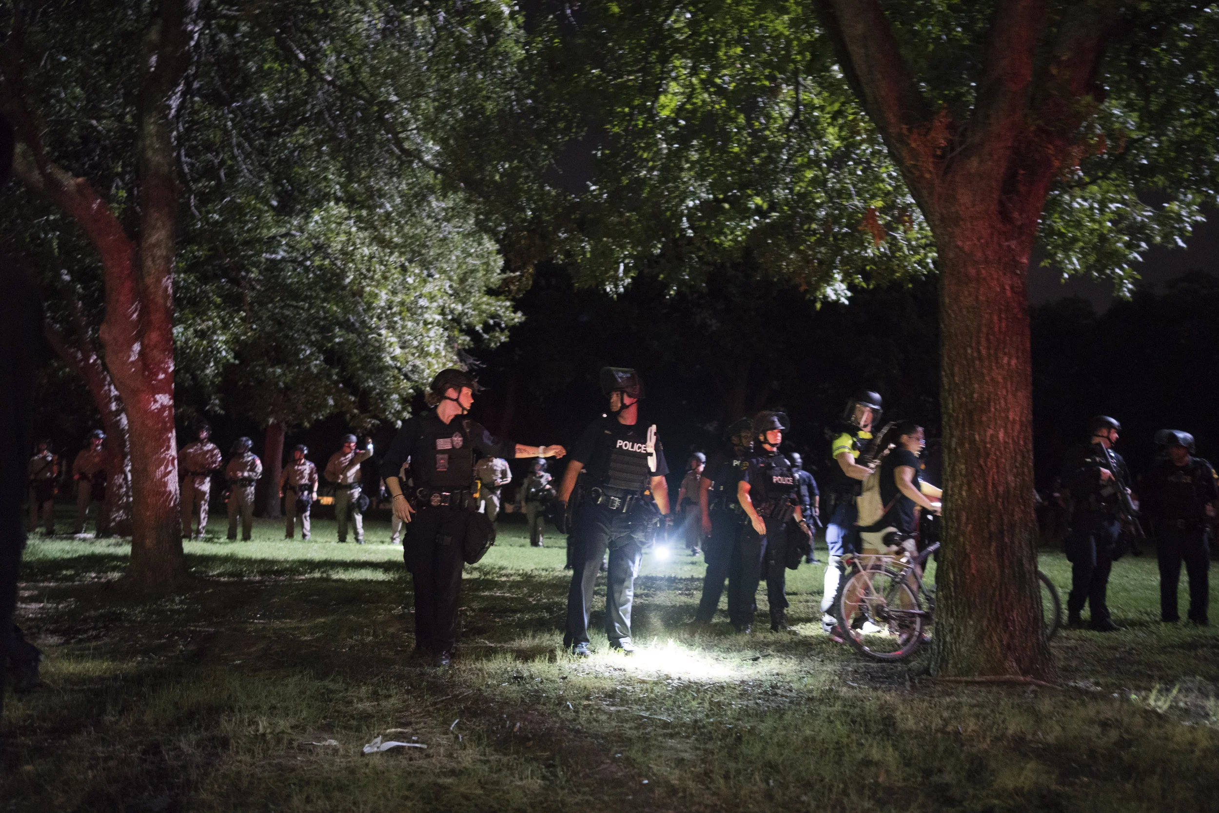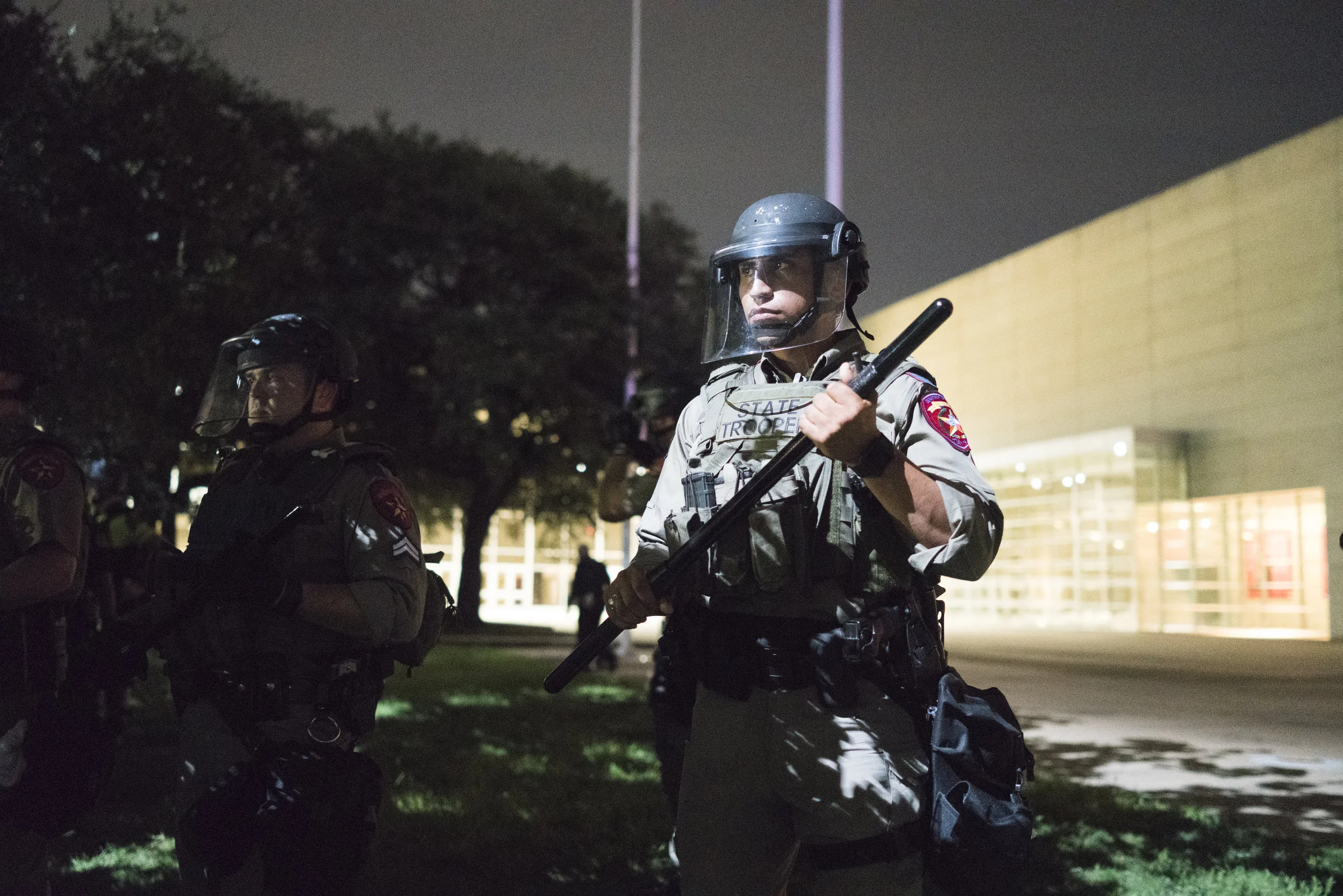 Dallas Police Department and state troopers organize to relocate protesters away from Pioneer Park Cemetery. August 19, 2017