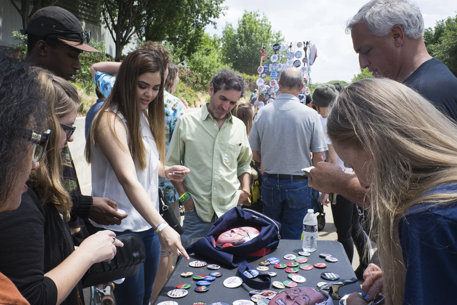 As the event concluded, attendees were greeted by vendors selling progressive-leaning merchandise, including political slogans like "Dump Trump" and "Black Lives Matter." April 20, 2017